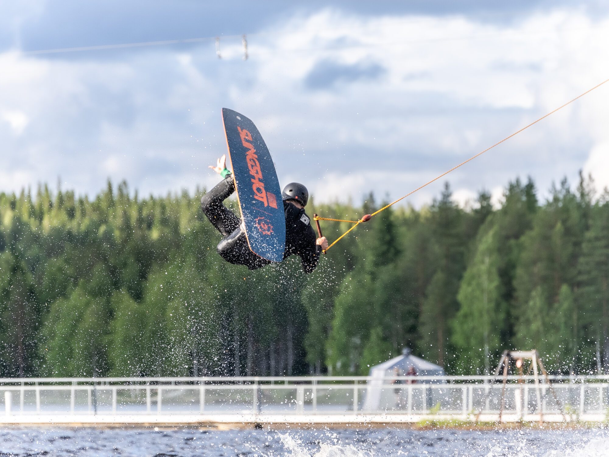 – Radalle vaadittavat välineet (wakeboard-lauta, kypärä, liivit ja märkäpuku)